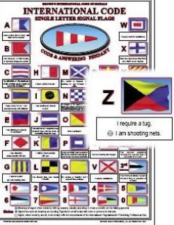 Browns International Code of Signals CardSingle Letter Signals and their meanings. Urgent and Important Signals, Numerical Pendants, Substitutes.Printed in Colour, Laminated, Mounted on Board, Ready to Hang420 X 297mm (A3)