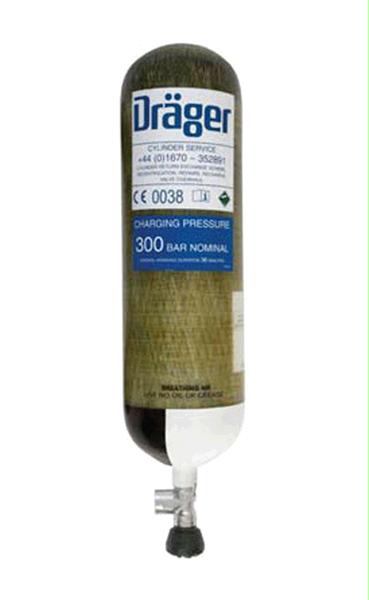 Light weight Dräger composite air cylinder - 6 ltr / 300 bar with EFV – filled- The cilinder consists of a Aluminum liner, carbon wrap, glass wrap and final resin layer- Lightweight, easy to clean and extremely resistant to shocks, chemicals and abrasion- Excess flow value/ filter- 300 bar in-line valve