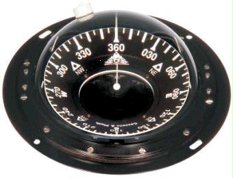 Steering compass Beta I - black casing and black card - 5° division - built-in type Professional steering compass for use on coastal commercial vessels and yachts. With white card 2/1° division. Each compass individually tested and certified. - Internal half gimbaled - Black/white card with 5°- division or white card with black 1°-division - Temperature stabilized -30° C ... 60° C .- Yachting type with six lubber marks for parallax free reading from different directions - Shadow pin (only yachting type) - Dazzle-free illumination 12 or 24 VDC - Seawater resistant coated brass casing - Polished mineral glass dome