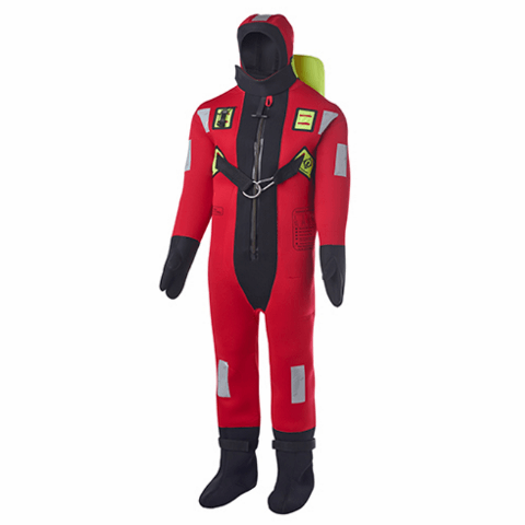 The Crew Endurance 140N suit is fully approved to the current SOLAS MED regulations and are designed to protect the wearer’s body from the cooling effects of unintended immersion in water to prolong life and to aid rescue.Constructed from 5mm fire retardant neoprene, the suit provides good insulation to reduce the risk of cold shock and delay the onset of hypothermia. All seams, with the exception of the external belt loops which are welded, are glued and blind-stitched to ensure they are totally waterproof. Critical areas, including the foot sole, are also taped for additional reinforcement. Quick and easy to don within the specified two minutes, each is supplied in its own carry bag with donning instructions included on both the bag and the suit.Providing over 140N of buoyancy, the integrated pillow enables the suit to be worn without a lifejacket and supports the wearer when floating in a face-up position. The hi-vis pillow and detailing, combined with the SOLAS approved reflective tape, also makes the wearer conspicuous in the water so as to aid their recovery.FEATURES• Hi-vis buoyancy pillow• 50mm nylon lifting strop harness with stainless steel D-ring• Designed to be unpacked and donned in 2 minutes• MED/SOLAS approved reflective tape• Waterproof, durable metal zip• Neoprene face flap• Withstands the impact of a jump into water from 4.5m• Fire retardant neoprene construction• Resistant to damage by oil, sunlight and seawater• Prevents a typical wearer’s core body temperature from dropping by more than 2 ºc after six hours in calm water of 0-2 ºc• Buddy line and whistle• Ankle adjustersSize chart:Medium 150-170 cmLarge 170 -190 cmXL 190 - 210 cm