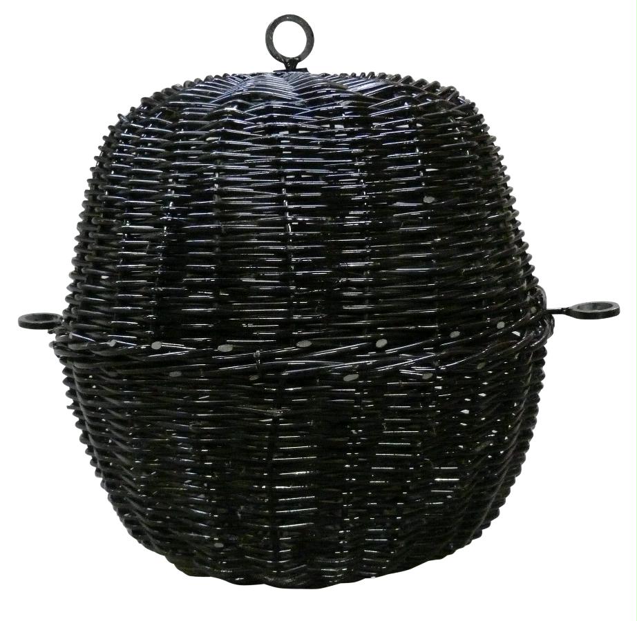 Ball shape - black - manufactured of rattan with vertical steel shaft and hoisting eyes - 600mm