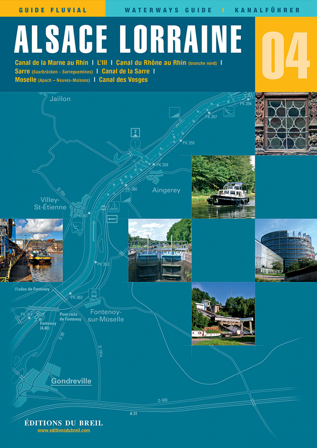 The Canal de la Marne au Rhin, the Canal du Rhône au Rhin (north), the river Moselle, the Canal des Vosges, the Canal de l'Est, the Sarre Canal and the River Sarre as far as Sarrebrücken.21 x 29,7 cm - 112 pagesISBN 2-913120-71-7Last updated 2022A network of rivers and canals in Alsace and Lorraine provides a link with neighbouring countries such as Belgium, Luxembourg and Germany. Thanks to their privileged position, these waterways constitute one of the last bastions of barge transport and, at the same time, provide a popular cruising itinerary for leisure craft.The Canal de la Marne au Rhin, which assures the east-west link, is a "modern" canal and most of its locks are electrified. As long as you are prepared to comply with the restrictions of lock chains, navigation on this canal is easy. From Vitry-le-François to Strasbourg, you will discover beautiful towns and cities and quite unique waterways structures such as the inclined plane at Arzviller.The 400 km of the former Canal de l'Est have been divided into two branches. The northern branch, now called the "Canal de la Meuse", closely follows the Meuse river as far as Charleville-Mézières. The southern branch, called the "Canal des Vosges", crosses the foothills of the Vosges mountains and joins the Saône at Corre. The whole of the canal de la Meuse is now included in our guide n° 17. In the present guide we cover the section from Verdun to Sedan.The Sarre Colliery Canal follows the river Sarre as far as the German border. Despite its unattractive name which recalls its existence as an industrial waterway, this canal offers a picturesque cruise through lakes and forests.On the other side of the border, the huge works to bring the locks on the Sarre to European dimensions have finished and it is now possible to reach the Moselle via this river. In the present guide we go as for as Sarrebrucken.