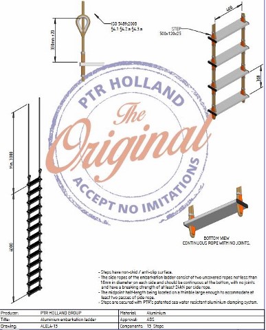 Embarkation ladder aluminium, 13 steps, 4 meter
