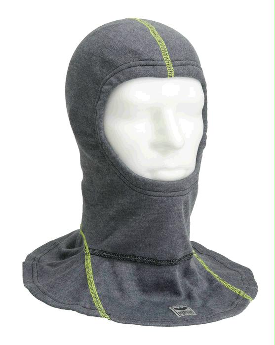 Fire-fighter hood (balaclava)Colour: GreySizes: One sizeFabric: NOMEX®/Viscose knit, 50/50, 235 g/m2Stitching: 100% Meta-AramideMiscellaneous: Elastic inside at face openingMain applications: Fire BrigadesApprovals: EN 13911NATO no. NSN 8415-22-611-0919