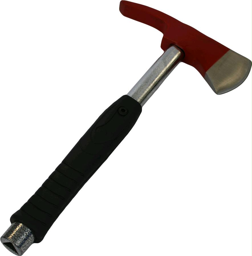 Standard fireman axe with oval steel provided with insulated rubber handle with integrated triangular key opening.