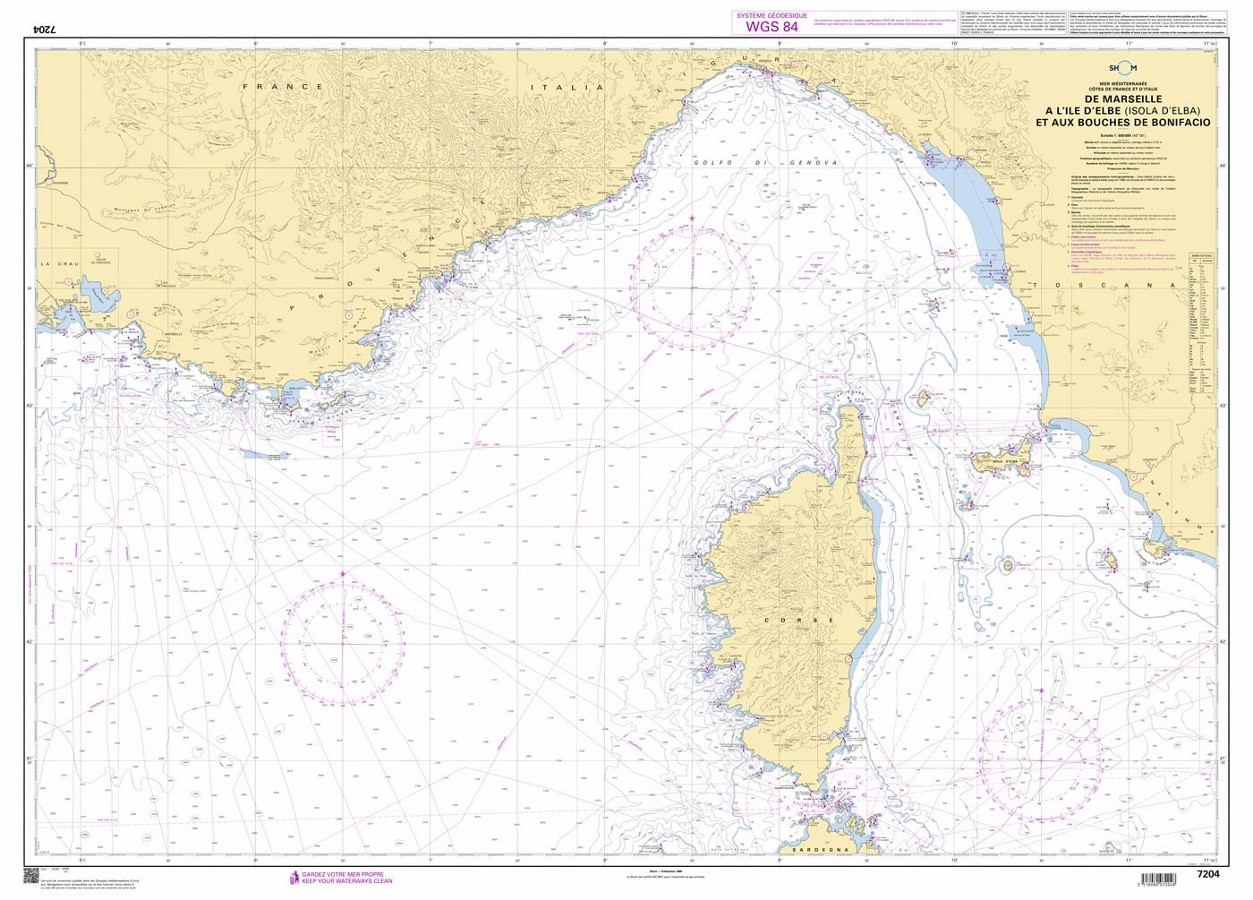 Shom 7204 - De Marseille à l'île d'Elbe (Isola d'Elba) et aux Bouches de Bonifacio