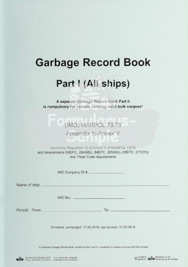 Garbage Rec. Book Part 1 Excerpts from MARPOL, Guidelines for the implementation of Annex V. Information on PSSA. Complying with MARPOL ANNEX V and Polar Code.
