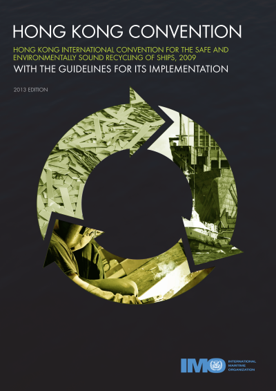 Hong Kong Convention, 2013 Edition This publications presents:- the Hong Kong International Convention for the Safe and Environmentally Sound Recycling of Ships, 2009:- six resolutions adopted at the International Conference on the Safe and Environmentally Sound Recycling of Ships held under the auspices of the International Maritime Organization in Hong Kong, China from 11 to 15 May, 2009:- six sets of guidelines for the uniform implementation of the Conventiond developed and adopted by IMO's Marine Environment Protection Committee; and- background information pertaining to the entry-into-force requirements of the Convention.