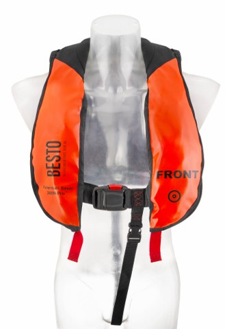 Automatic inflatable Life Jacket (twin chamber/asymmetrical) Solas Fisherman Saver 300N wipe clean- Twin Chamber- Hammar HRU- Wipe clean- Solas safert light- Fleece neck- Zipper closing- Crotch strap