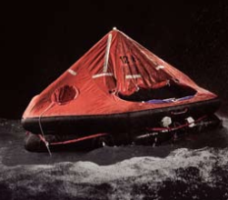 Liferaft, capacity 12 persons, davit-launched type, with emergency pack A, packed in a round polyester container, MED/SOLAS