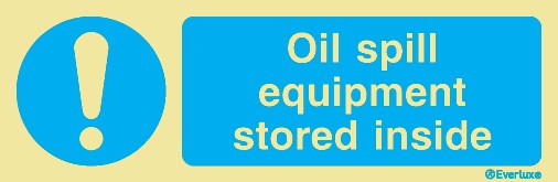 Oil spill equipment stored inside - mandatory sign