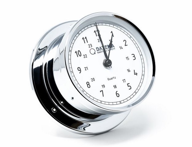 Marine Quartz Clock - Type 'Datema' - diameter 5" - 106CRU - ChromeProfessional chrome clock with quartz clockwork. Dimension 160 x 60 mm, diameter clock face 120 mm.Faceplate: 130mm ØHousing:165mm Ø Height: 80 mmWeight: 650 gr
