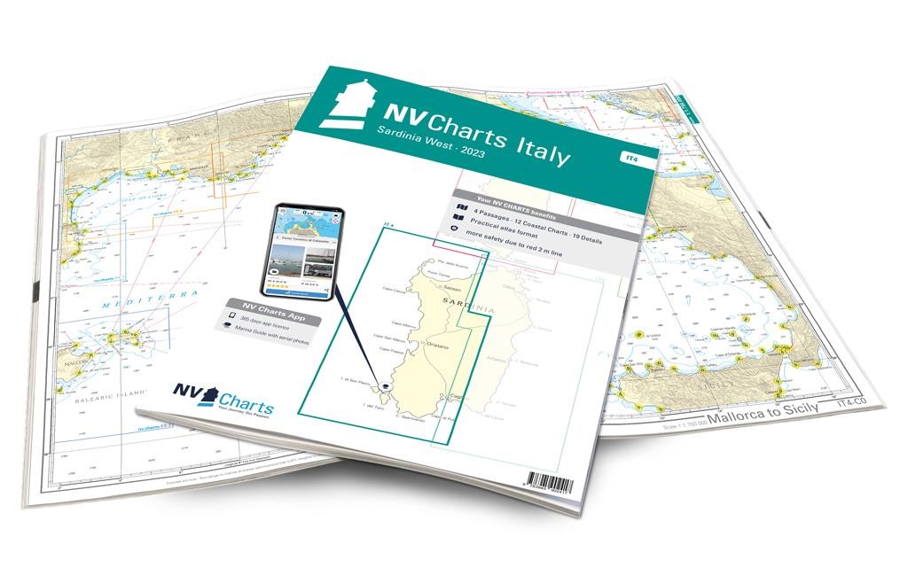 The Sardinian west coast should not be visited without the IT4. The set of charts starts below the town of Costa Paradiso, which bears the same name as the coast. The Gulf of Asinara begins with the wonderful harbour of Porto di Castelsardo. It is only a few nautical miles to the magical Stintino on a westerly course. If you want to circumnavigate the former penal colony Isola Asinara, you can simply shorten it with the passagio dei Fornelli. You should also set a course for the beautiful Sinis peninsula. There are hardly any harbours or bays along the way, especially since the waves and the underwater cliffs make approaching difficult. At Cap San Marco in the Golfo di Orsitano you can find shelter from the west wind. The next destinations are the two charming offshore islands Isola di San Pietro and Isola di Sant'Antioco. Even in the off-season, a trip is very possible due to the pleasant climate of Sardinia.Thanks to the clear structure the skipper can quickly find approaches, harbours and anchorages and is informed of important navigational details that also appear in the NV Charts app. The chart series impresses with its optimal scales and balanced sheet cuts.This chart set contains:4 Passage Charts12 Coastal Charts19Details ChartsCode for the appDigital charts & navigation programmePaper harbour plans & DigitalNavigation instructions in English and ItalianMeets legal requirements for up-to-date paper charts on board NV Atlas chart format NV Charts nautical charts are available in an outstandingly practical, handy atlas booklet format and thus offer many advantages over formats from other manufacturers. The nautical chart series have been designed by nautical experts and passionate water sports enthusiasts with the needs of recreational boating in mind. The NV Atlas has a very flat staple binding in the middle, so that the course triangle can also be used there without any problems. This innovative development makes it possible to look up charts quickly and always have them in the best possible order at the same scale. The NV Atlas is delivered in a plastic cover protected against splash water. This modern nautical chart format is very popular on sailing boats as well as on motor yachts and is the preferred choice of many of our customers.