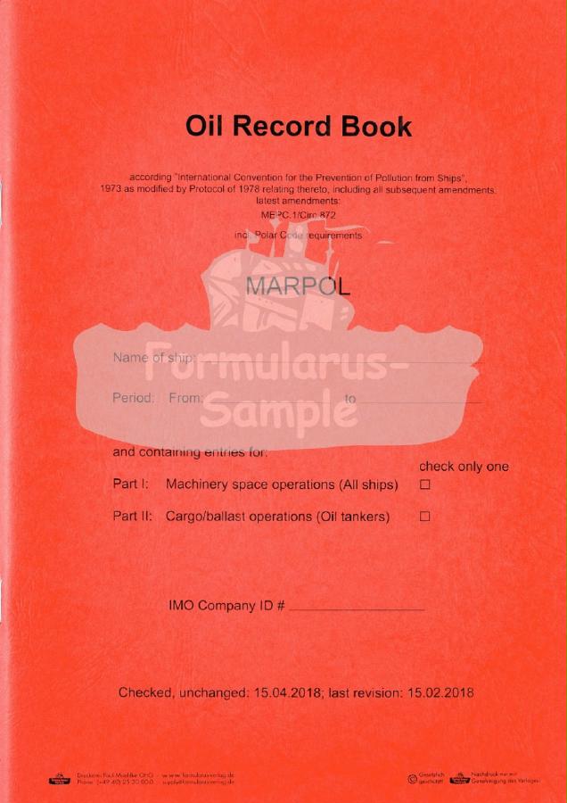 Oil Record Books MARPOL Information on Special areas and PSSA. Complying with MARPOL, ANNEX 1. For machinery spaces and oil cargos.