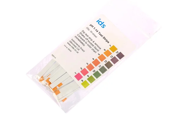 pH Inidcator Test Strips , 1-14 pH (bag a 50 strips)pH Indicator StripsFrom Instruments Direct, a selection of individual pH test strips designed for measuring how acidic or alkaline a sample or solution is. The pH test strips feature a non-bleed, padded paper test tip attached to a vinyl wand. These testing strips are easy to use and provide accurate results in a few seconds.What is pH?The pH scale is an internationally recognisable scale that is used to indicate the acidity or alkalinity of a liquid or sample. Chemicals, liquids and samples are often classed as being acidic, basic or neutral on a scale of 0 pH to 14 pH. Low pH values are considered acidic, higher pH values are called basic and values around the 7 mark is referred to as neutral.• 0 = very acidic (hydrochloric acid)• 7 = neutral (pure water)• 14 = strong alkali (sodium hydroxide)How to use the test strip:• Take a single-use testing strip and briefly dip the end into the sample or solution to be tested for a few seconds• Remove the test strip from the solution and carefully shake off any excess liquid.• Compare the test strip with the supplied colour chart• Do not allow the strip to dry out before colour matching• Full range pH testing 0.2pH to 14pHFeatures and Benefits:• Accurate, rapid results• Inexpensive, easy and simple to use• Dip and read in seconds• Clear visual indication of pH levels• Ideal for testing the pH levels in water, urine and saliva• Available in different pH rangesApplications:pH measurement is used in nearly all industries that deal with water or chemicals. Tough laws will govern how factories, plants and warehouses deal with wastewater. Completing regular pH tests are vital for the health and safety of employees, the general public and the environment. Although pH won’t necessarily indicate a particular type of pollution is present, a pH indication level can help with the management of potentially high or low reading. Some typical applications include• Agriculture• Chemical industries• Manufacturing• Hospitals and laboratories• Calibration testing• Aquariums