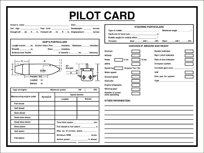 Poster for emergency instruction and information; Pilot card