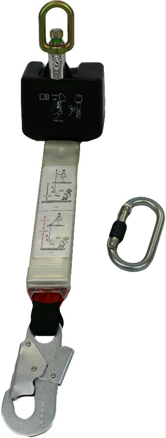 Retractable Fall Arrester with polymer casing and webbing lanyard length 2 meter and a Polymercasing hook, usable in factor 2
