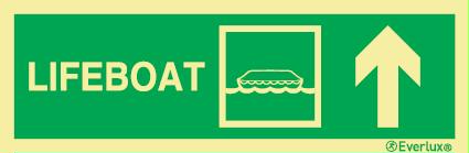 Safety sign; Direction lifeboat (straight on from here)