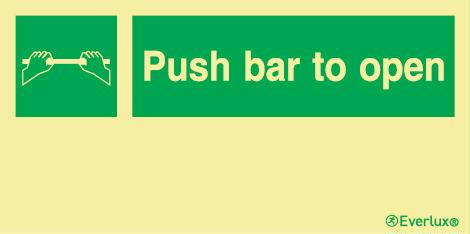 Safety sign; Escape door opening mechanism - push bar to open