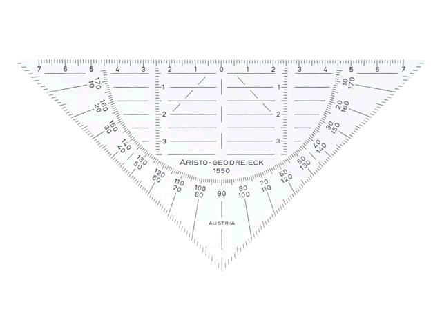 Transparent flexible plastic, making it less likely to break. Combination of ruler, protractor, triangle and parallel ruler.