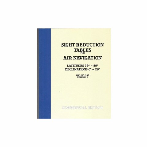 HO tafel 249Sight Reduction Tables for Air Navigation Vol 3Latitudes 39° - 89°Declinations 0° - 29°Auteur: Defence Mapping Agency