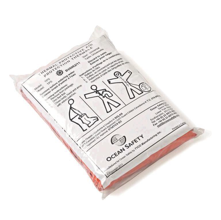 This TPA is an aluminized polythene suit with heat sealed seams, which protects from a temperature range of -30°C to +20°C. This one size suit fits all. Can be worn over bulky clothing allowing movement of the arms and legs.- High visibilty - Retroreflective tape - Easy to don - Packed dimensions: 133 x 178 x 32mm
