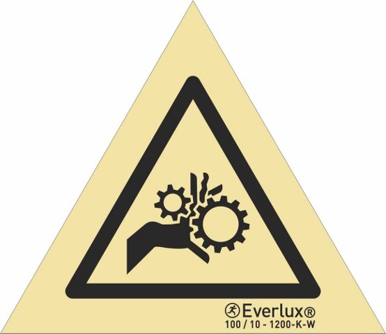 Sign: Warning; Danger rotating parts - rigid photoluminescent plate, 150x150mm