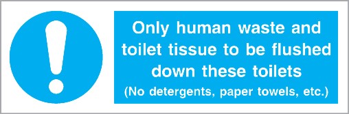 Waste flushing instruction sign 300x100mm Self-adhesive white vinyl