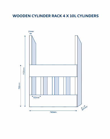Wooden bracket for Medical Oxygen suitable for 4x10L bottles