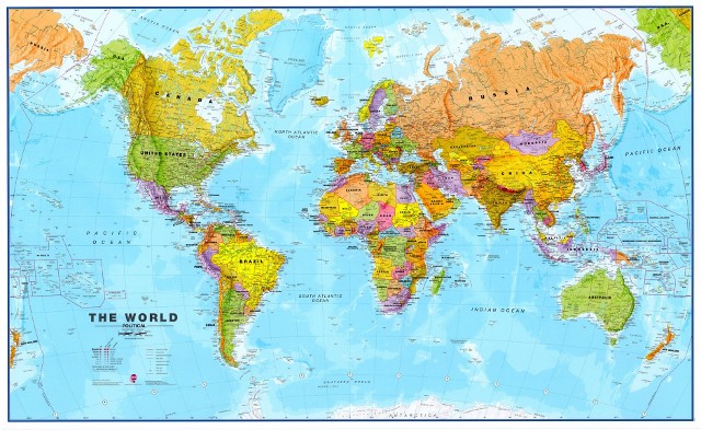 World map, double-sided laminated (without side-bars) - 140 x 85cm
